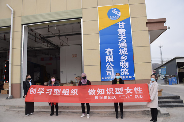 在慶祝三八婦女節(jié)儀式上,集團公司副董事長鄭龍和副總經理蘭小偉為全體女職工發(fā)放了福利并合影。